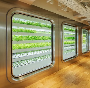 銀座のお野菜が水耕栽培されています。オシャレにディスプレイされてました☆