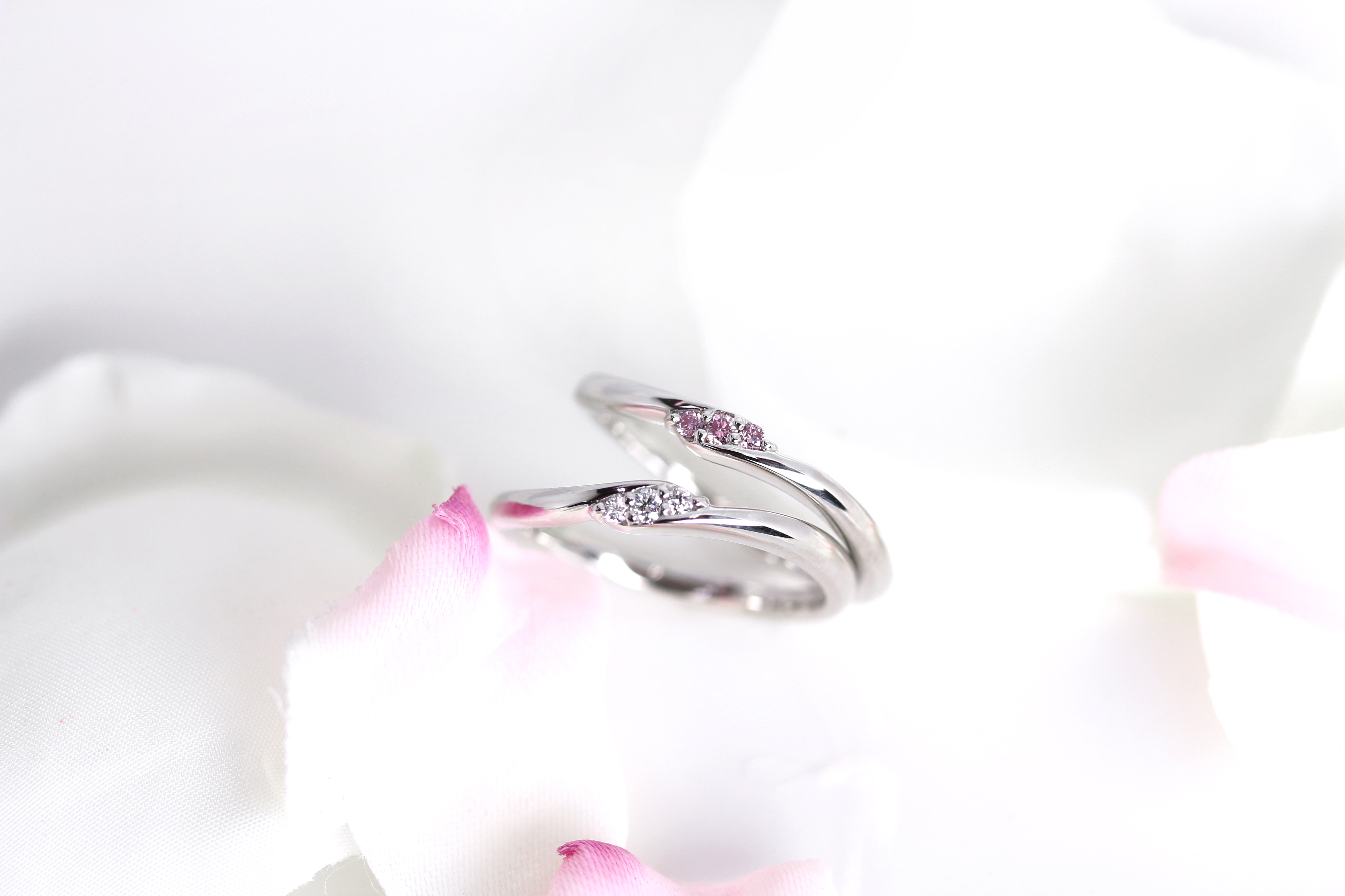 センターのダイヤモンドを1石だけピンクダイヤモンドにする